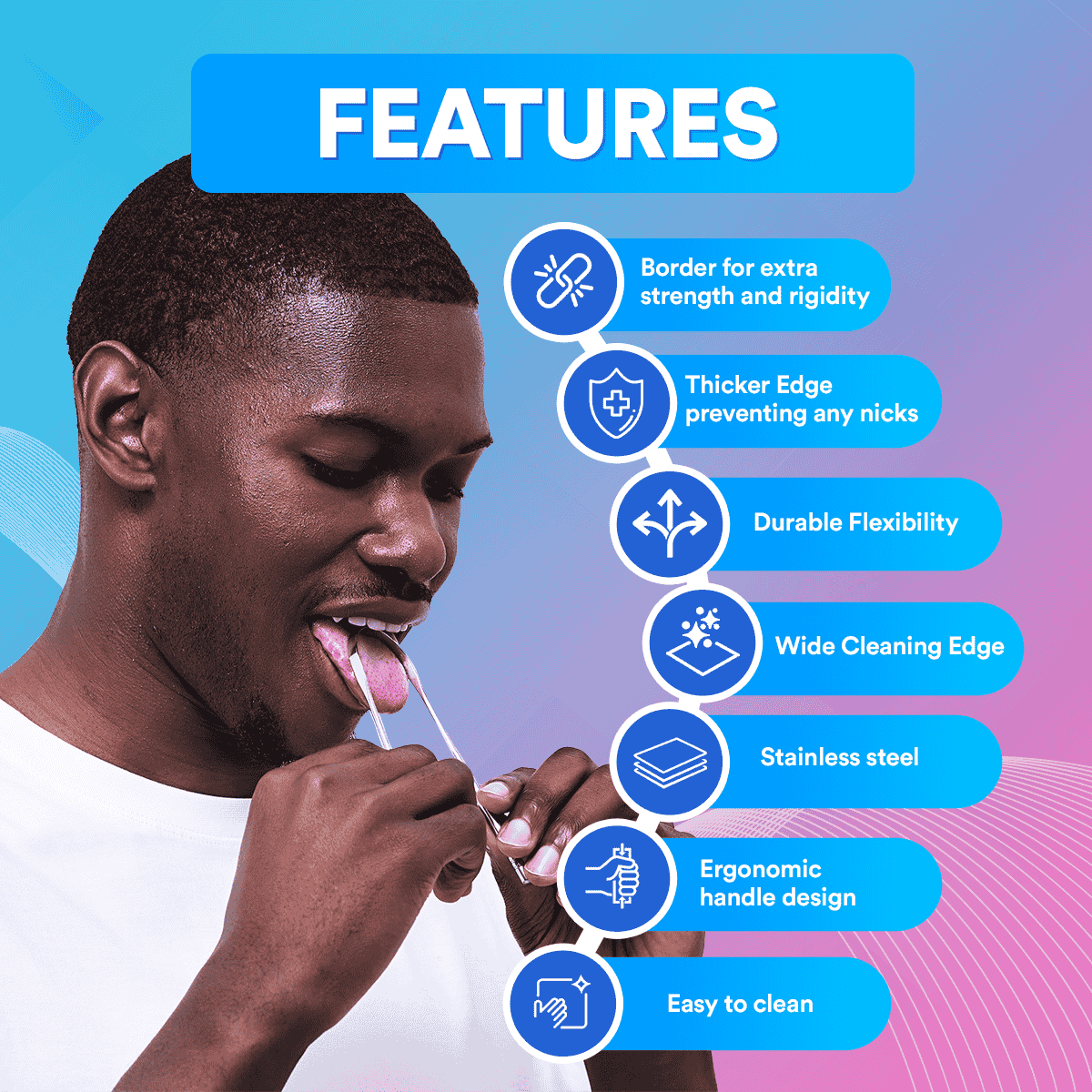 Whether you're looking to reduce the white-coated appearance on your tongue or support your daily oral care routine, this effective Tongue Scraper has got you covered. Immediate benefits of tongue scraping with this tool include a fresher breath and boosted confidence — all part of feeling your best, every day.